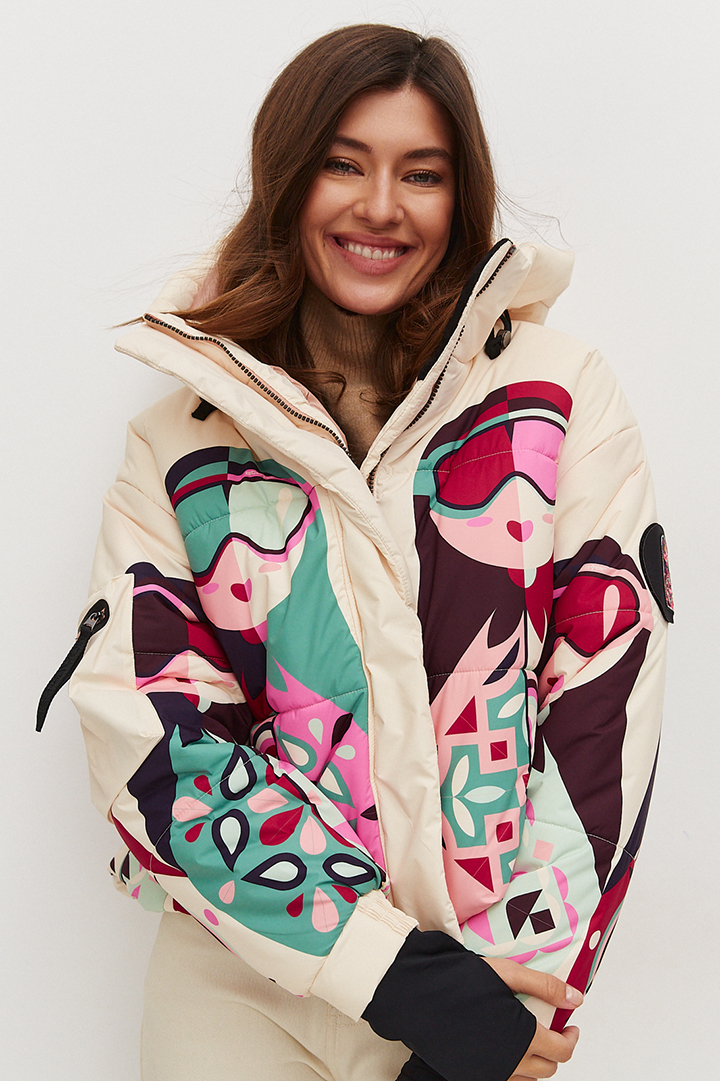 Куртка горнолыжная женская «Матрешка» с авторским принтом. Серия изделий APRÈS-SKI линейки одежды для горнолыжного спорта и отдыха, объединившей в себе традиционное искусство, современную моду и технологичность. Максимум комфорта и модности в одном изделии. Оригинальная форма и все атрибуты горнолыжной куртки сделают ваше пребывание на горнолыжном склоне максимально комфортным.